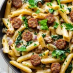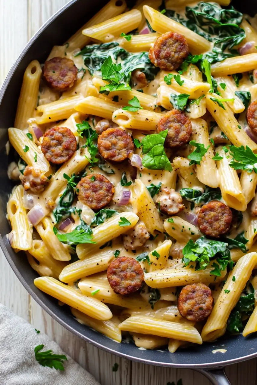 This creamy vegan sausage pasta skillet isn’t just a meal; it’s a little pause, a warm hug on a plate. The sauce, rich and velvety from blended cashews, wraps around tender pasta and savory sausage slices, while a touch of spinach sneaks in freshness. It’s the kind of dinner that feels both indulgent and nourishing, comforting without being heavy.