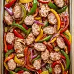 A quick and easy sheet pan recipe featuring flavorful chicken sausage, bell peppers, and onions seasoned with classic fajita spices. Perfect for a weeknight dinner with minimal cleanup.
