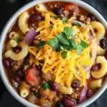 One evening, I remember juggling a handful of distractions—half-listening to a podcast while rummaging through the fridge—and almost forgot the slow cooker was on. The smell of chili, tomatoes, and spices eventually pulled me back to the kitchen. The pasta was perfectly tender, and the sauce was thick enough to cling to every forkful. I topped it with cheddar cheese that melted just right and a sprinkle of fresh cilantro that added a bright, unexpected touch. It wasn’t fancy, but it was exactly what I needed, somewhere between comforting and satisfying, with just enough boldness to keep me coming back for more.