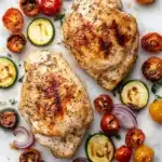 No need for anything complicated here—just a sturdy skillet and a baking sheet will do the trick. I usually serve this with a simple green salad or maybe some crusty bread if I’m feeling indulgent. Sometimes I swap out the zucchini for asparagus or throw in a handful of mushrooms, though I haven’t tested all these swaps thoroughly. A pinch of smoked paprika on the chicken can work wonders if you want a little smoky depth. Oh, and if you’re in a rush, you can toss the veggies in the oven first and then cook the chicken while they roast; it’s a bit more relaxed that way.