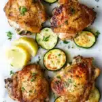 A quick and easy one-pan dinner featuring juicy chicken thighs roasted alongside tender zucchini and flavorful seasonings. Perfect for a healthy weeknight meal with minimal cleanup.
