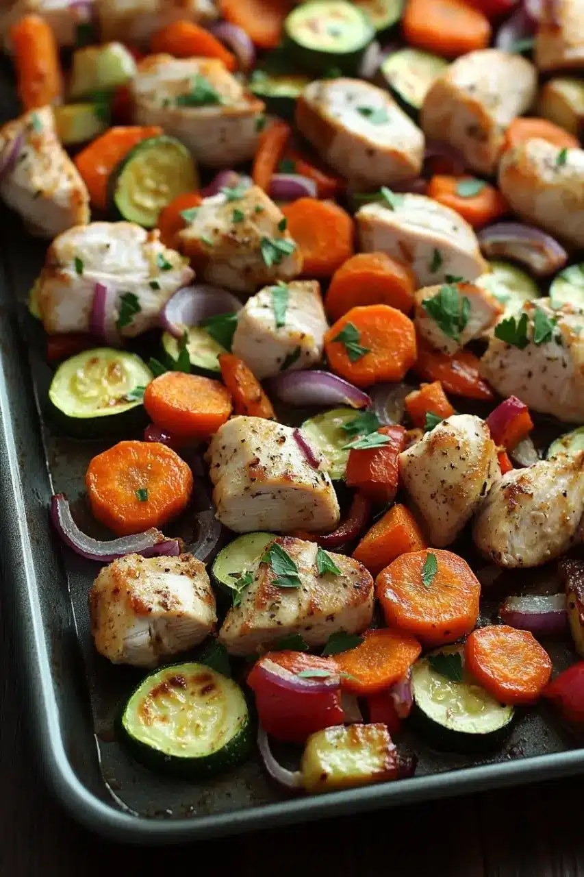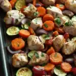 A simple and flavorful sheet pan dinner featuring tender turkey breast with roasted vegetables, perfect for an easy weeknight meal.