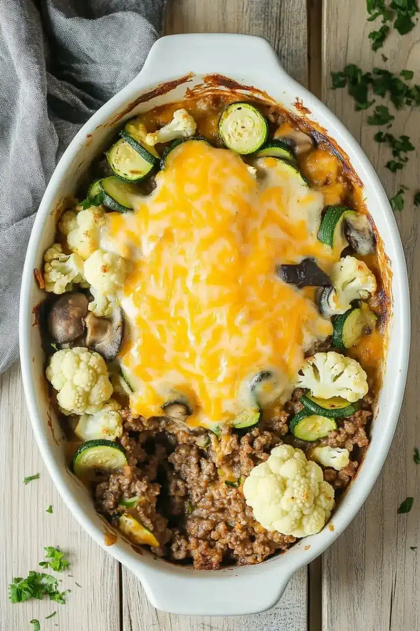 A hearty and delicious low carb ground beef casserole perfect for a satisfying dinner. Packed with vegetables and cheese, this casserole is easy to prepare and ideal for those following a low carb diet.