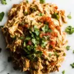 Kitchen Notes: You don’t need anything more than a basic crock pot for this, which is great when your kitchen space is limited. Once the chicken is done, I like to serve it with warm tortillas and a squeeze of lime—sometimes with a side of rice if I’m feeling extra hungry. If you want to change things up, adding a bit of black beans or corn to the mix can be nice, though I haven’t tested those variations extensively. Sometimes I toss in a little extra cilantro at the end, but that’s more habit than necessity. Oh, and if you want a little crunch, topping your tacos with sliced radishes or crunchy lettuce adds a nice texture contrast.